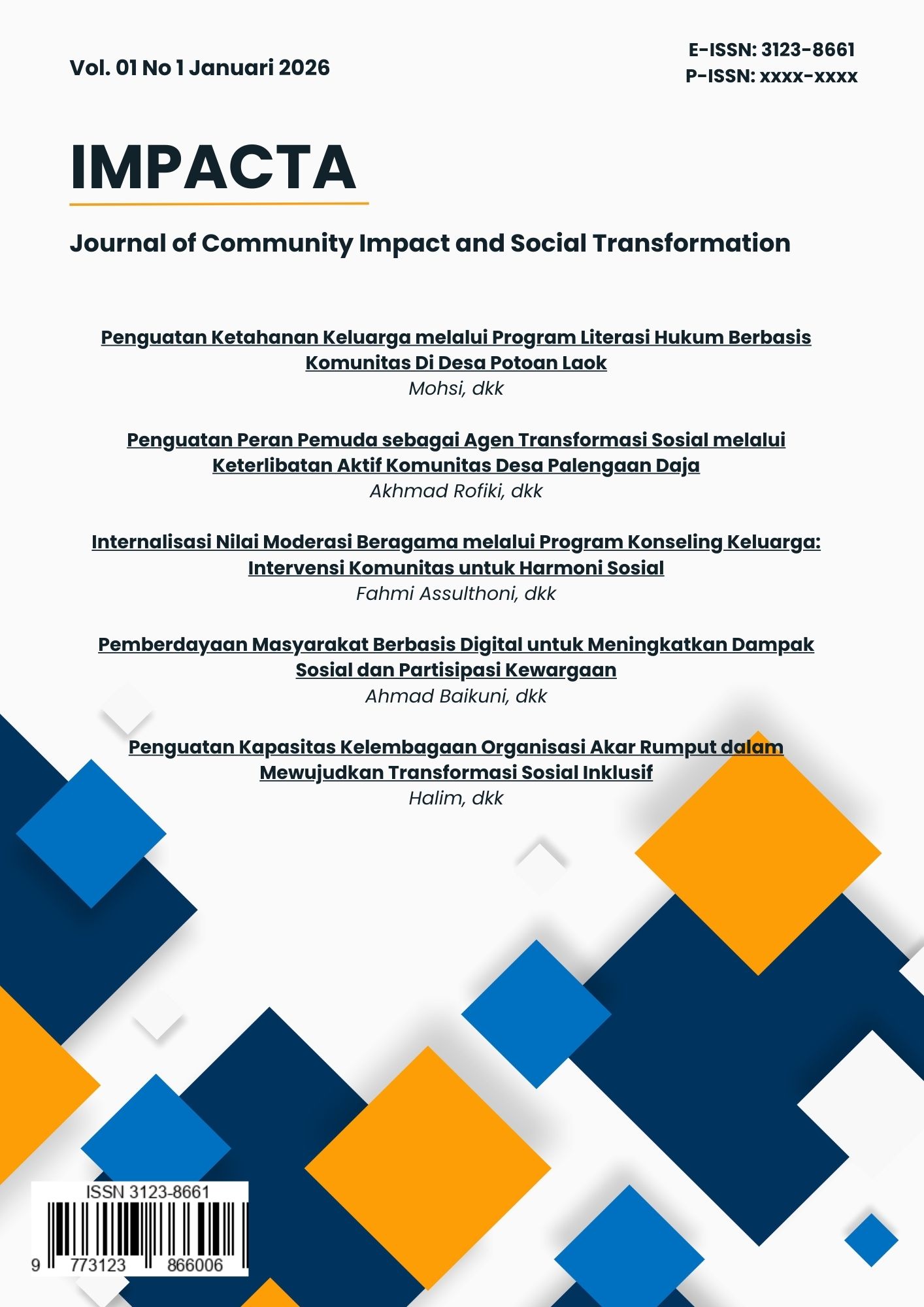 IMPACTA: International Journal of Community Impact and Social Transformation is a peer-reviewed international journal dedicated to disseminating impactful community engagement practices that drive sustainable social transformation. The journal provides an academic platform for scholars, practitioners, and community-based researchers to share innovative, evidence-based, and transformative community service initiatives.